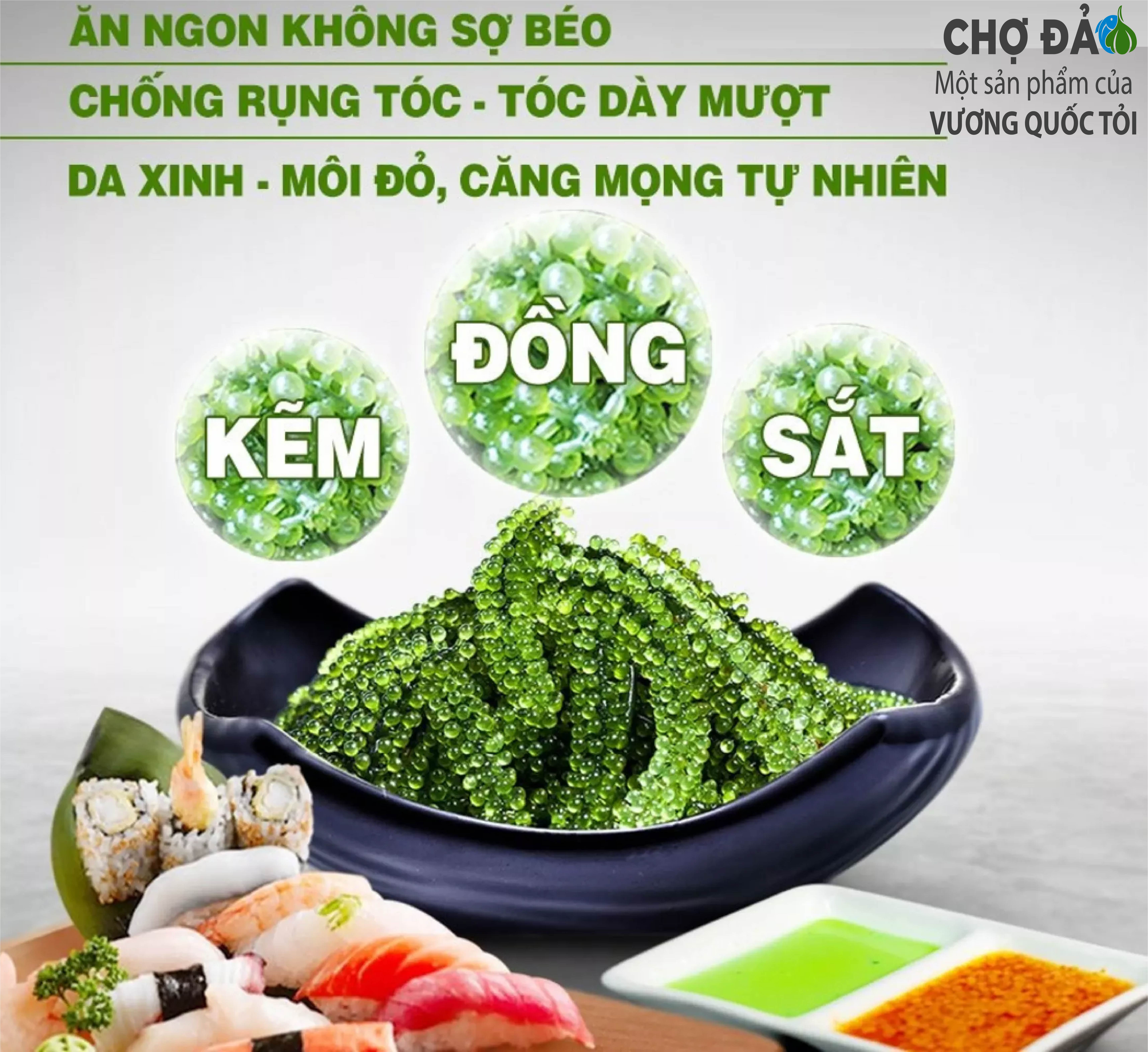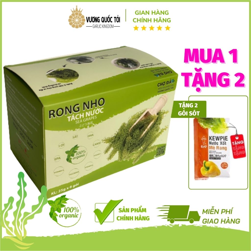 Rong nho là một loài rong biển quý và có giá trị dinh dưỡng cao hơn nhiều loại rau, củ, quả khác nhưng rất kén điều kiện nuôi trồng. Rong nho tách nước VƯƠNG QUỐC TỎI được sản xuất từ rong tươi theo công nghệ tiên tiến giúp giữ nguyên chất lượng sản phẩm trong điều kiện nhiệt độ thấp. Rong nho có nguồn gốc từ Nhật Bản, được sản xuất theo quy trình khép kín, hoàn toàn kiểm soát dinh dưỡng, rất an toàn cho người sử dụng.
